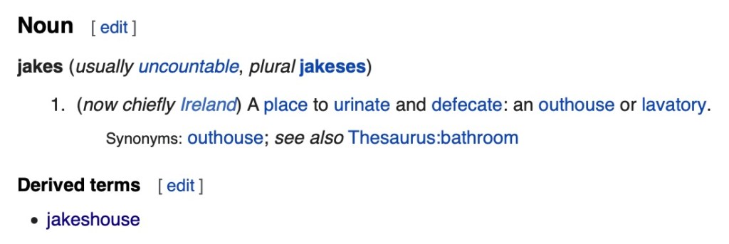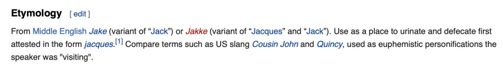 Historically, a Jake or Jakes has a few fun definitions, which have all contributed to my choosing this name for the media production effort being crystalized now.